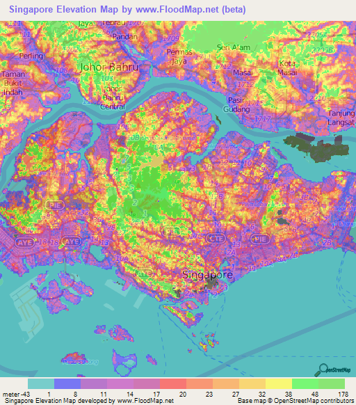 Singapore Elevation And Elevation Maps Of Cities Topographic Map Contour